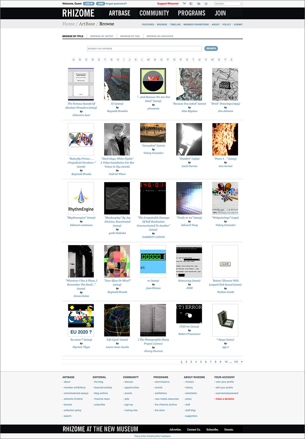 Rhizome’s ArtBase interface ca. 2013