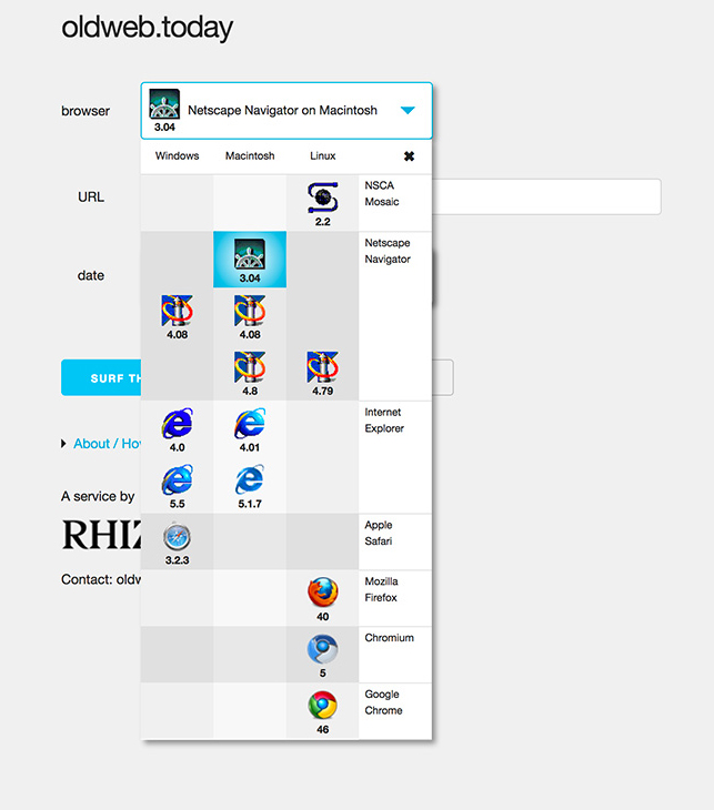 Oldweb.today interface, 2017