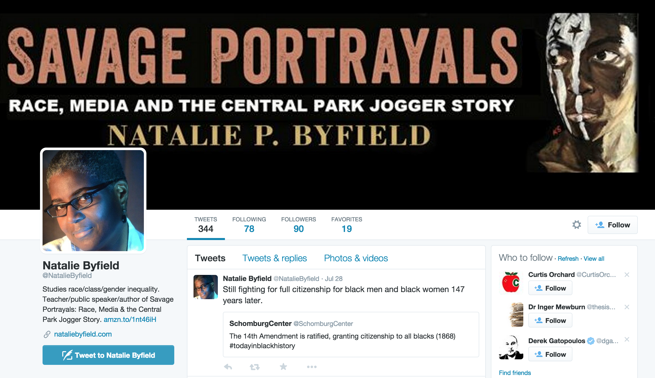 Byfield researches race, gender, and class inequalities particularly as they impact the lives of black women and men in the United States. Much of this research is performed at the intersection of media’s role in society as a way to unearth social phenomena that indicate the role of media (or not) in the construction and reproduction of elements of our culture, specifically our social structure. She focuses her attention on individual/subjective lived experiences as a way to examine how people from varying class/race/gendered backgrounds interact with or create media systems to make sense of their world. Her recent book Savage Portrayals: Race, Media, and the Central Park Jogger Story uses her own subjective experiences as a lead reporter on the Central Park jogger case for the New York Daily News to examine the relationship between the mainstream media coverage of the jogger’s sexual assault and the wrongful convictions of five black and Latino teens. Her focus on subjective lived experiences provides the foundation for her to build methodological work outside the traditional meta-narratives of qualitative and quantitative research and investigate other ways of knowing, i.e. other epistemologies.