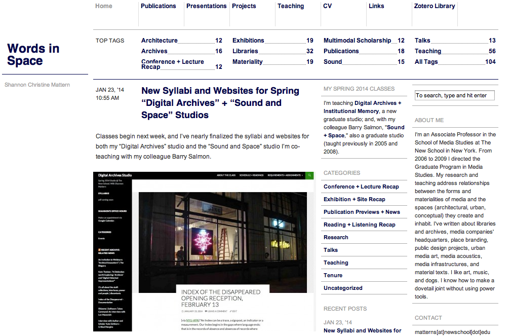 "In general, and for blogs, I read mostly theorists' blogs and am going to here recommend a more media archaeological blog; Shannon Mattern's Words in Space."