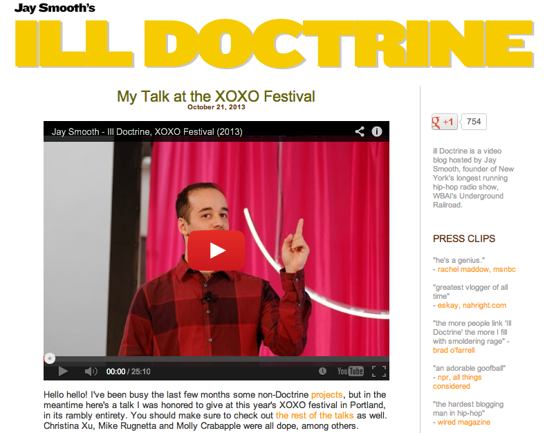 "Jay Smooth offers great commentary on social and political issues; he consistently comes at well-trodden hot topics from a new angle. I'm always eager to hear what Jay has to say."