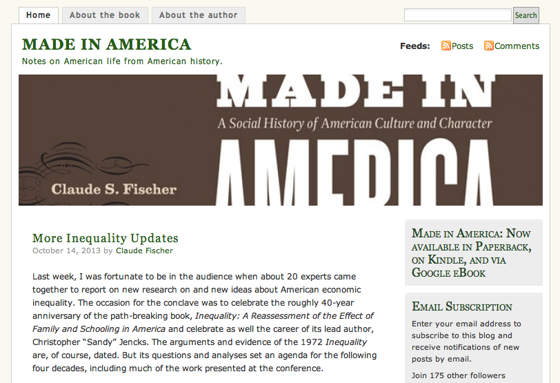 "Made in America is sociologist Claude S. Fischer's website accompanying his book by the same name. He offers in depth and insightful analyses of a surprising range of Americana."