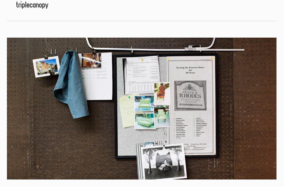 "The sites I don't visit as often as I'd like are Triple Canopy, Hyperallergic, Brooklyn Based, Studio Visit, and We Make Money Not Art."