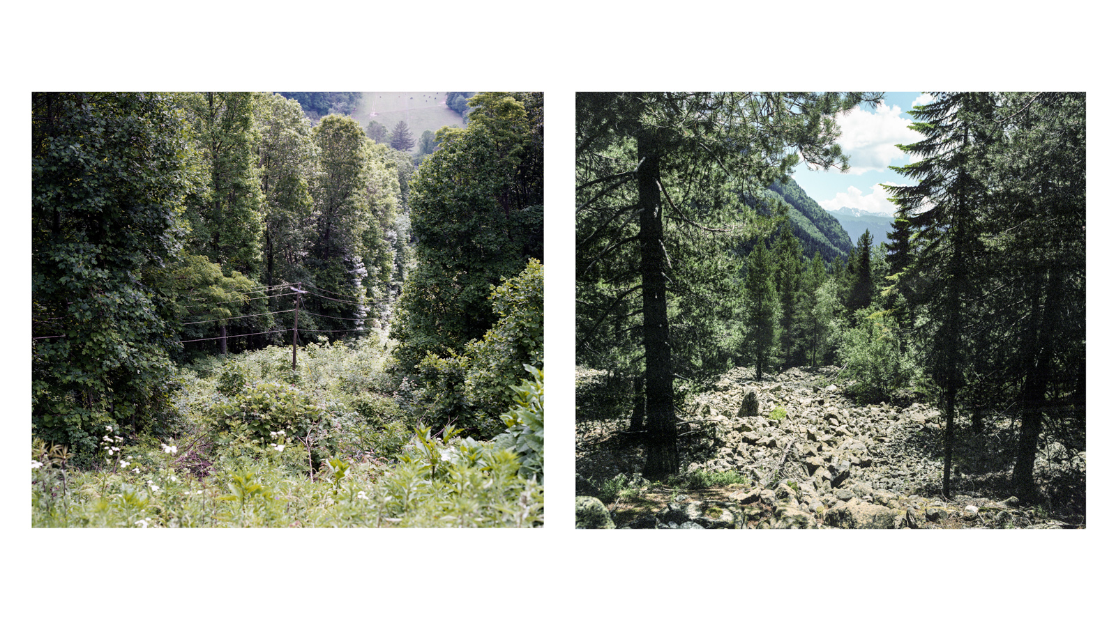 The collaboration worked so that each photographer would influence the other’s visual work. Shevchenko was the first to photograph. She was directed by Zeleny to create images around three broad categories: people, landscape and the human built environment. This was done to create a small measure of influence in Shevchenko’s work, which would then dictate what Zeleny shot when in Georgia, USA. Using Shevchenko’s images as a base, Zeleny playfully builds upon the original images, finding similar subjects and ‘poetic connections’. For instance, the phrase ‘in the shadow of the mountain’ became a theme which challenged Zeleny to not only seek out connecting imagery but also to shoot in a style reminiscent of Shevchenko. After each project was completed, a selection of images were compiled into a single narrative of a unified place not known to physically exist.