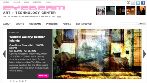 “Eyebeam, BRAC … Google alerts and what my research assistants have sent. I spend too much time on scholar.google.com … silly of me”