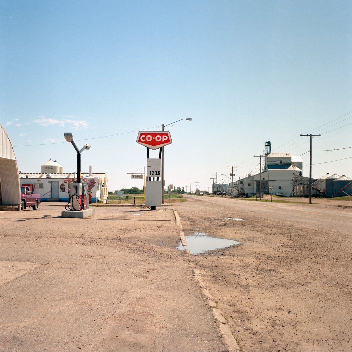 Neither contemporary nor nostalgic, the production of the visual component for this project was a simple execution. I documented small rural communities (one thousand inhabitants or fewer) in the Canadian West. The built landscapes featured in these images are changing. Taking a cue from Louis Argon’s Paris Peasant, my goal was to document fixed moments within this ongoing process of change before further transformations took hold of the space. Alternatively, my accompanying written work was diverse and complex. Driven by the visual work, the project raised questions I felt were not adequately being dealt with in Canadian photography. The topics included conceptions of geography, legacy retention, place attachment, identity (of the land and its people) and the questionable dichotomy of urban/rural space.