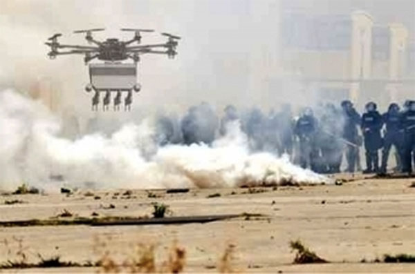 Corporate mine owners purchased a drone that shoots paintballs filled with pepper spray.